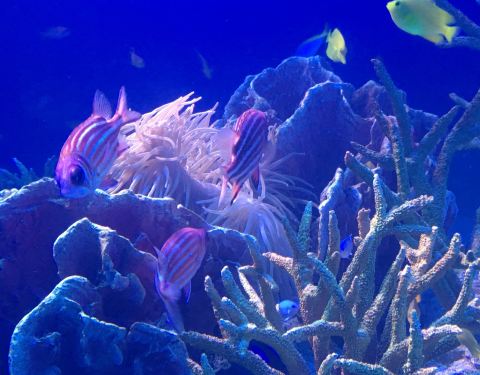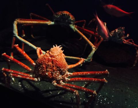 因为已经是第二次来镰仓了,所以就没有去灌篮高手的经典场景打卡啦~门票2100日币,那江之岛镰仓的一日票可以打折哦!我们忘记了,出了水族馆才想起来,想着试试去售票处问问,结果人家同意给我们退差价,真的是意外啊!喂食和表演时间都在门口写好了反光有点厉害,意思就是说旁边那个白色的圣诞树上的灯会亮是因为水缸里的电鳗模仿生态河流的效果河豚接下来就是很多鱼了在吃饭的小螃蟹,那小嘴动的可快了这条小鱼还挺可爱的。小海马在水族馆里面拍的挺喜欢的一张照片大乌贼这个鱼隐藏的超级好啊!和沙地融为一体。这个螃蟹不知道和我们在日本吃的螃蟹是不是一样这个鱼群超级好看!下午1点赶上了水族馆的一个活动,挺有趣的,虽然不是很听得懂,但是整个模式很新颖非常形象生动的用各种生活中的物品告诉大家深海水压的威力水族馆里我最喜欢拍的就是水母了,希望大家海涵好喜欢这个大水球这个鱼好像《小美人鱼》里面的那种藏在岩石里面的鱼,长得好吓人啊~水母小丑鱼这种小生物怎么可以那么好看呢!又一头栽进水母的世界。