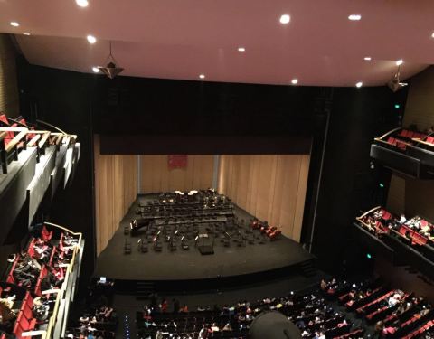 位置很好找,北边杭州市民中心,西边洲际大酒店,南边钱塘江。我这次在一个小厅看了青少年交响乐。做的位置虽然有些高,但声音及舞台效果构不错