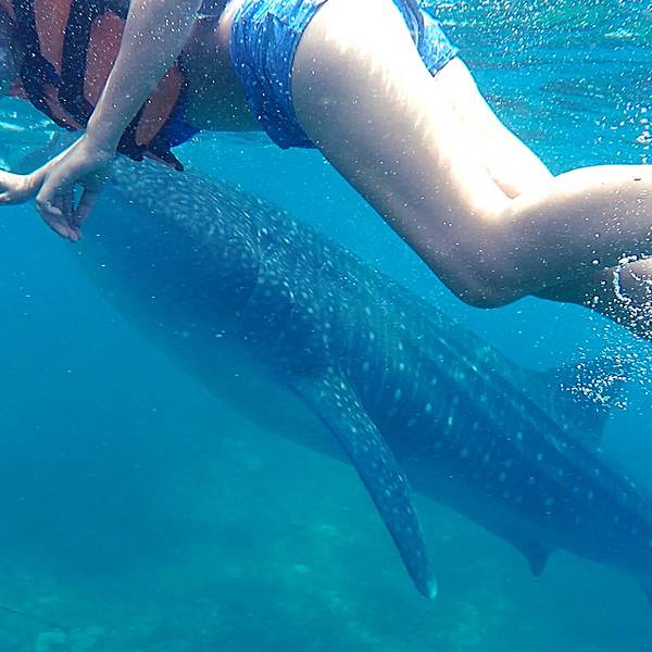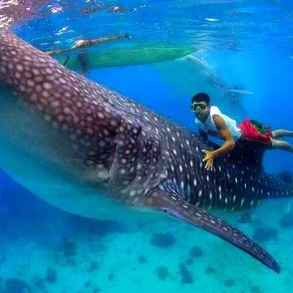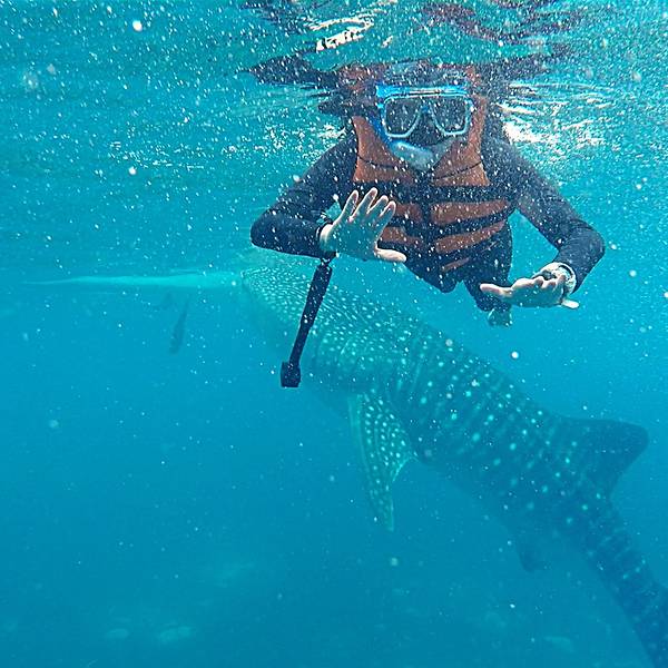 ...,看到鲸鲨庞大的身躯,又想近距离看清楚,又不敢靠太近,怕它一张嘴吃食的时候,顺便把我给吸进去了坐上螃蟹船,驶入到一个差不多固定的区域,船夫用早已准备好的鱼饵投放到海里,鲸鲨就朝着我们的船过来了,看到鲸鲨庞大的身躯,又想近距离看清楚,又不敢靠太近,怕它一张嘴吃食的时候,顺便把我给吸进去了