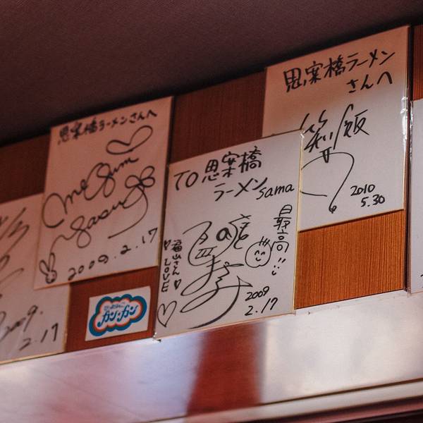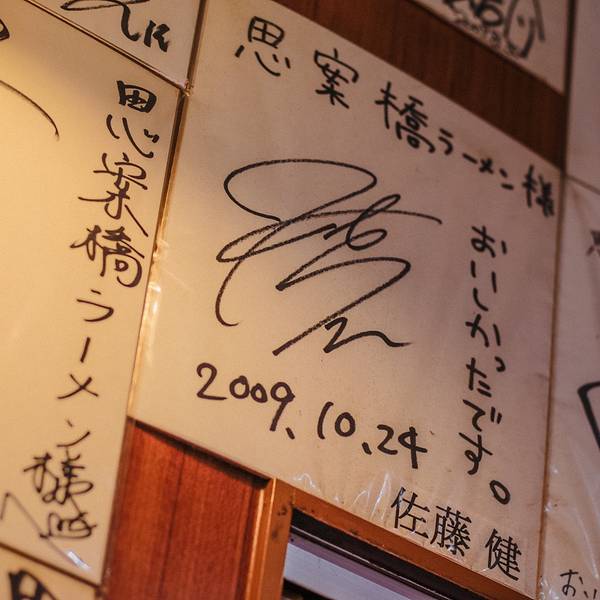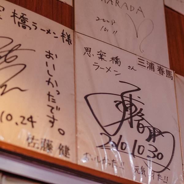 这个思案桥拉面很有名 他主要的名气是来自日本知名的艺人——福山雅治。这家是福山雅治也赞不绝口的长崎拉面名店 福山雅治回长崎时常常会来这里吃拉面 因此店内不仅有他的签名板 而且还不只一张 代表了他真的是常...