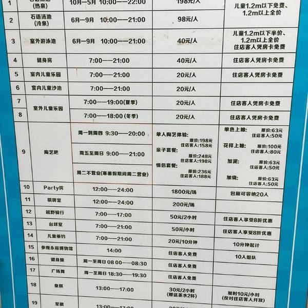记得价格比网上便宜 大概是78一个人 所以就把网上预定的退掉了 温泉设在酒店内 从大堂出去右转...这个温泉是酒店自带的 规模不算小 住酒店会每个房间赠送一张温泉票 但还得再买张 住店可以以优惠价格直接在温泉接待处购买 记得价格比网上便宜 大概是78一个人 所以就把网上预定的退掉了 温泉设在酒店内 从大堂出...这个温泉是酒店自带的 规模不算小 住酒店会每个房间赠送一张温泉票 但还得再买张 住店可以以优惠价格直接在温泉接待处购买 记得价格比网上便宜 大概是78一个人 所以就把网上预定的退掉了 温泉设在酒店内 从大堂出去右转 一个竹子栅栏围着的就是石语温泉 更衣室环境不错 各种设备齐全 但是整个温泉区域照明设施不佳 很多池子的水是冷的 根本达不到温泉的基本温度 池子还很深 没有台阶下去 有点吓人 设计不人性化 但是池子种类还算多 只能说随便泡泡了 晚上也看不出来干净不干净 白天就没时间泡了 晚上泡起来风大还是有点冷 展开