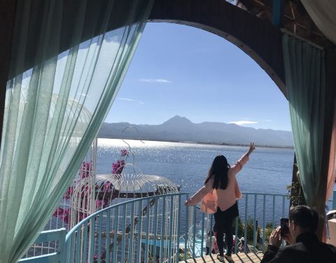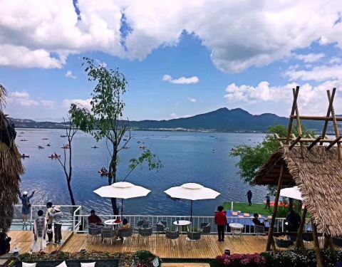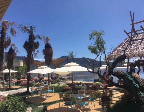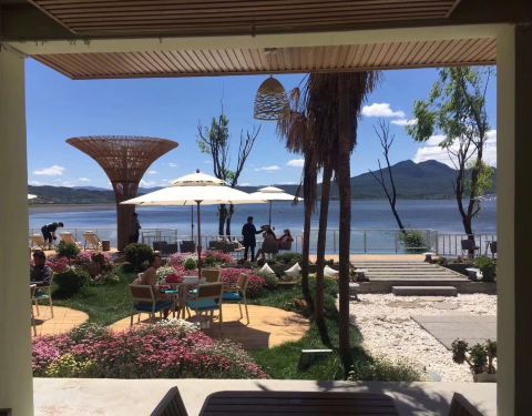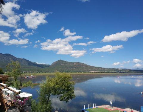 早晨8:30,马场派车来接,当然也可以自驾,从古城到马场大概一个小时的车程。到马场后,第一感觉就是湖景驿站的装修风格,很类似双廊客站。之后就是自由活动时间,可以拍照,可以骑马,可以划艇。天很蓝,景很美,阳光很灿烂,所以朋友圈赞它是丽江版的“马尔代夫”。