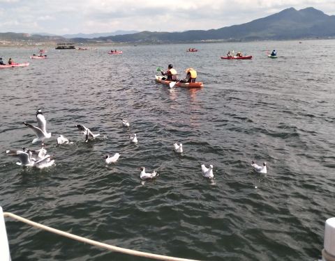 午饭也是包含在套餐内的,土鸡火锅和烤土豆之类的,服务员一再强调蔬菜和鸡肉无限量添加,只要不浪费就行。吃完午饭会所提供免费的下午茶。相比来说下午的人会比上午的多,划船的地方已经开始有人排队。但是对拍照之类的实在不感冒,就是朋友圈里说的摄影师技术再好,也还是不想动,就坐在一搜单人船上,静静的发呆。如果不是不会游泳,真想躺船上睡一觉。