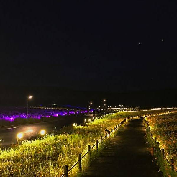 夜景很美 水幕很赞 除了下🌧️ 其他都很完美现在应该已经算花期的后半期了吧 但还是很美 配上晚上的灯光更美 看到了向日葵的花苗 想再去看次🌻