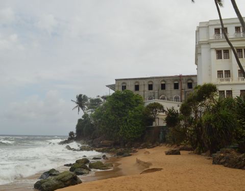 蒙特拉维尼亚位于科伦坡南郊12公里处,这是一片离科伦坡市区较近的沙滩度假胜地。科伦坡出发的火车沿着海岸线向南,右侧是大海,其中,科伦坡-蒙特拉维尼亚路段几乎是在水中穿行,简直就是宫崎骏动画片中的场景。