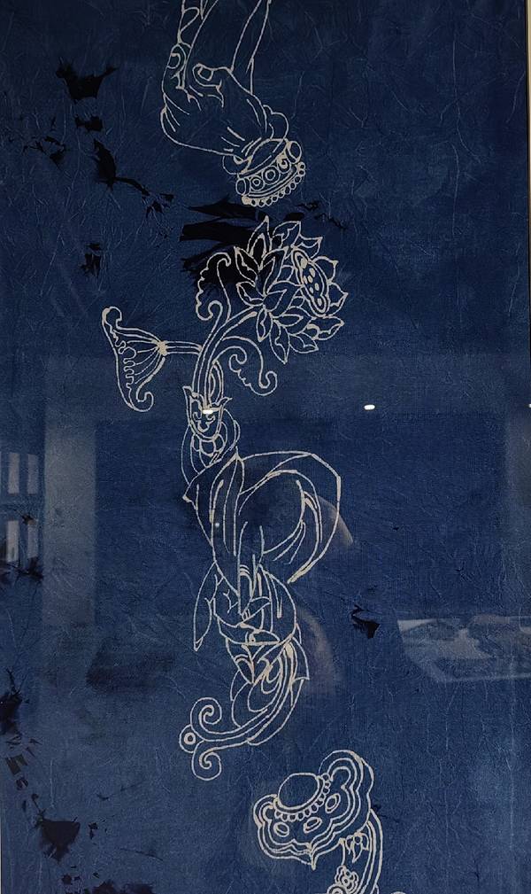 染蓝经历了从直接染色、水煮染色到发酵还原染色。织物浸泡后呈黄绿色,接触氧气后逐渐变为蓝色。开创蓝靛制造技术后,不断重复可以让蓝色越来越深,这就是“青于蓝”的由来。