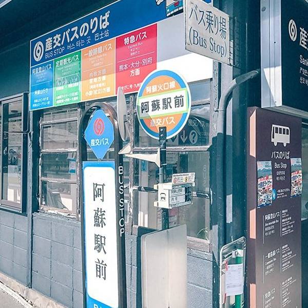 在JR阿苏站前可以换乘产交巴士去阿苏火山和熊本周围其它地方。