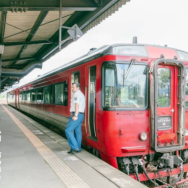 探索阿苏火山的起点,从阿苏到熊本站之间,运行着九州的特色限定列车阿苏男孩号,很适合带小朋友乘坐。