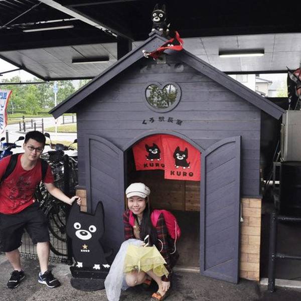 觉得停下来吃点东西呼吸一下新鲜空气也不错 然后在阿苏站看到了阿苏boy的家一个小小的狗窝,不知...