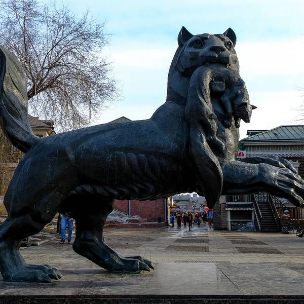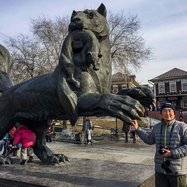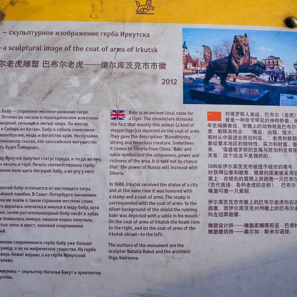 游人纷纷在巴布尔老虎的雕塑前留影。在130 风情街上吃最地道的布里亚特餐。130 风情街130 风情街位于伊尔库茨克历史中心南部,是伊尔库茨克最著名的商业街。这里曾是最早的茶商驿站,贸易及转运的需要,让这条街遗留下了各个年代、各种风格的传统俄式木屋,现代城市规划以此为依托,建成了一条集餐...130 风情街位于伊尔库茨克历史中心南部,是伊尔库茨克最著名的商业街。这里曾是最早的茶商驿站,贸易及转运的需要,让这条街遗留下了各个年代、各种风格的传统俄式木屋,现代城市规划以此为依托,建成了一条集餐饮、购物、娱乐、文化为一体的古俄式建筑休闲街区,也成了现代与历史融合的浪漫风情街。漫步在充满艺术气息的街道上,你会发现几乎每栋建筑的颜色、木刻花边、木窗和房顶样式都不一样,一栋栋小木屋仿佛一个个精美的艺术品,令人眼花缭乱。风情街的尽头是一个大型购物商城,商城有高大上的感觉。130 风情街130 风情街130 风情街130 风情街中午,我们在130 风情街上的这家餐厅吃最地道的布里亚特餐。在130 风情街上吃最地道的布里亚特餐布里亚特餐布里亚特餐布里亚特餐布里亚特餐布里亚特餐布里亚特餐也在餐厅吃饭的这对俄罗斯夫妇很友好地配合我们拍摄可爱的俄罗斯小宝贝130 风情街130 风情街130 风情街130街街口有一座巴布尔老虎的雕塑。老虎嘴上叼着一只紫貂,老虎和紫貂象征着伊尔库茨克地区的独特性,实力和财富。伊尔库茨克市的市徽选用了这个雕塑的图案。一个俄罗斯帅哥举着一个牌子在塑像前,牌子上是俄文,导游告诉我们,牌子上写的是保护贝加尔湖,原来这是一个环境保护者在此宣传环保,立马让我们对这个年轻人有了钦佩的感觉。和环境保护者帅哥合影留念巴布尔老虎的雕塑前留影游人纷纷在巴布尔老虎的雕塑前留影。这两个俄罗斯美女很配合我拍摄。俄罗斯小宝贝俄罗斯小宝贝当地人对我们都很友好130 风情街130 风情街卖艺的老人130 风情街卖艺的老人。据说,伊尔库茨克人均收入在3000元人民币。130 风情街130 风情街130 风情街130 风情街卖艺人。注意中间那人的手指,估计是个残疾人。可爱的俄罗斯小孩可爱的俄罗斯小孩130 风情街130 风情街130 风情街130 风情街 展开