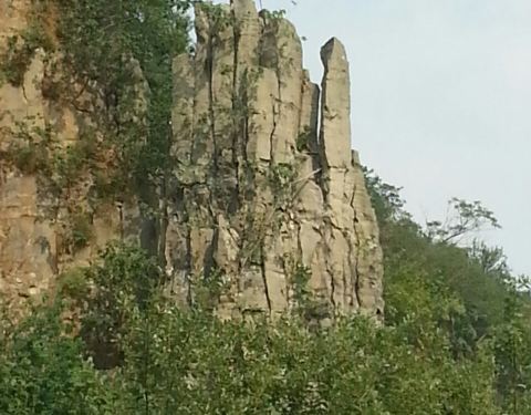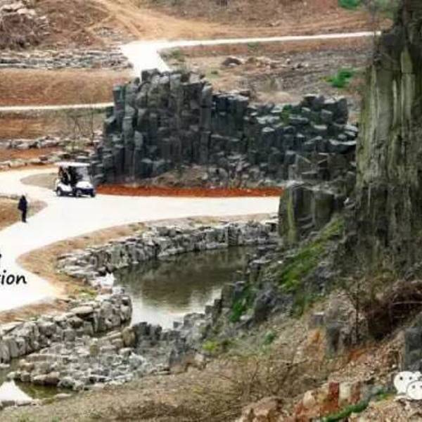 捺山地质公园的门票是70一张,还有年票,有人觉得贵,值不值得的主要还是取决于看的人的感受吧,就像莎士比亚的哈姆莱特,100个人看就有100个哈姆莱特,公园尚未完全建好,所以之前也看到一些不好的评论,不过我倒认为最美的风景一定不是人工所能造出来的,没建好有没建好的好处,呈现出更多的必然是原生态的自然景观。买完票后村村咨询了服务人员有没有景区导览图,被告知没有后,村村觉得这样也好,那就自己去探索去发现吧。村村去的时候景区内的指示牌暂时也没做好,没有请导游,所以不清楚每个景点的名字,不过村村觉得并不重要,那都是人为命名的,别人可以把它命名为“白龙潭、雨花石溪、大石柱、黑沙石”等等,不过只是别人的对自然景物的主观感受与认知,你大可以根据自己的喜好给这些景色取一些诸如“风陵渡、黑木崖、龙虎关、月华峰、玄冥岛”之类的昵称嘛!既然是地质主题的公园应该是可以见到一些不常见的地理景观吧,作为学地理出身的村村已经毕业多年,行前特地收集了一下相关信息。(下面加粗黑体字是村村百度到的科普知识)