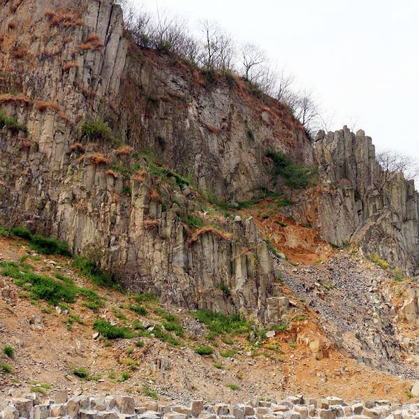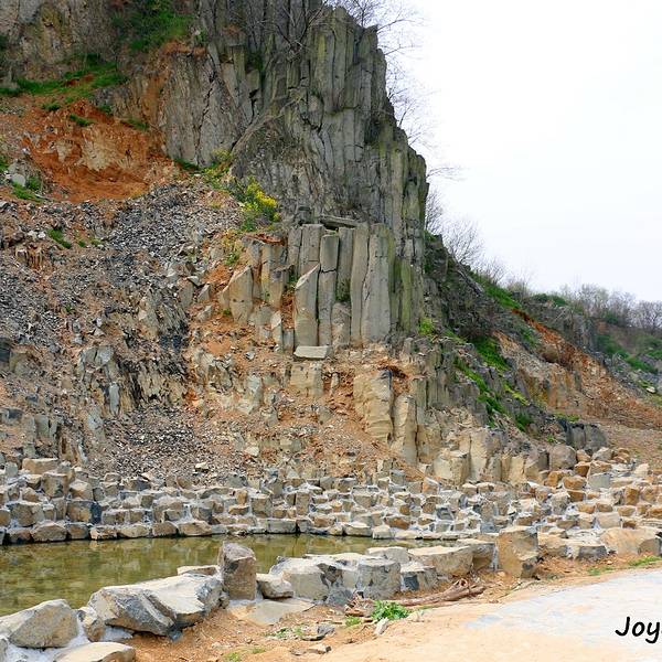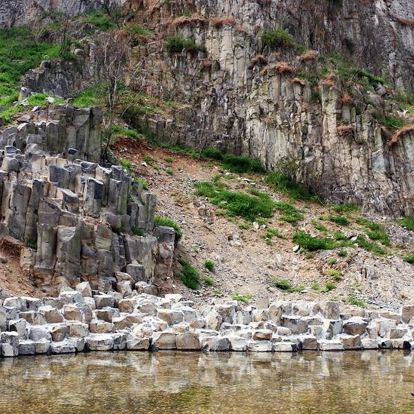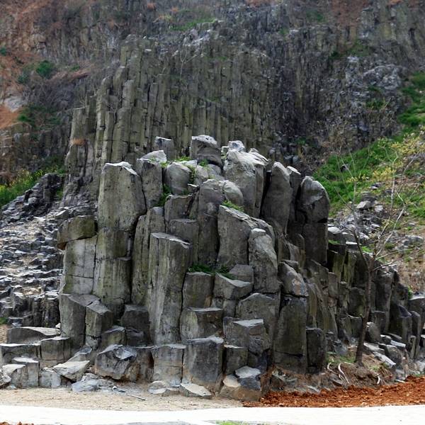 上个世纪,开山采石对捺山的生态环境造成了一定破坏,却无意中使玄武岩石柱和一系列地质变迁的图景重见天日。捺山的天然石柱林为“黑色致密状橄榄玄武岩”,目前裸露处主要在山的西南坡、东北坡的山腰处,呈不规则环带状分布。”