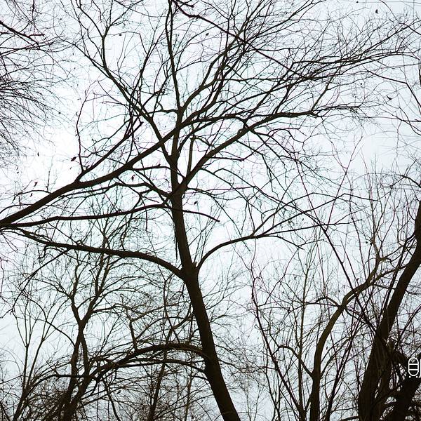 这样落光了树叶的枝干衬着冬日微亮的天空,