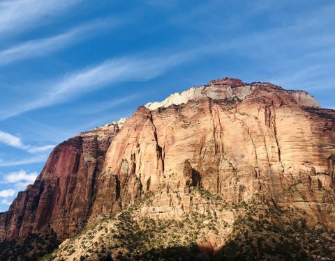 刚进公园门口就看到的棋盘山,整个山体都是白茫茫一片,把"棋盘"格子完全覆盖住了2月中去的时候,气温较低,尚有积雪,也正因为如此,为这个国家公园披上了一层白茫茫的亮色。刚进公园门口就看到的棋盘山,整个山体都是白茫茫一片,把"棋盘"格子完全覆盖住了。 车子开往Zion的路上,车窗外两...2月中去的时候,气温较低,尚有积雪,也正因为如此,为这个国家公园披上了一层白茫茫的亮色。刚进公园门口就看到的棋盘山,整个山体都是白茫茫一片,把"棋盘"格子完全覆盖住了。 车子开往Zion的路上,车窗外两侧白色一片,配上阳光、蓝天和白云,给人以素静而又有生机活力的感觉。Zion是露营、徒步和攀岩爱好者的天堂。攀岩的山体笔直,真佩服那些老外。 展开