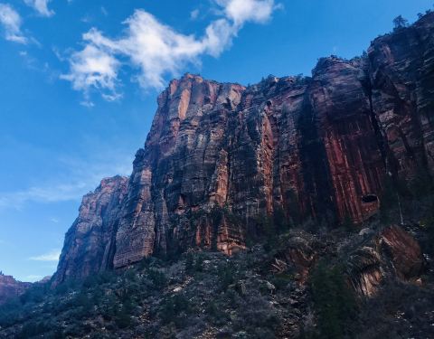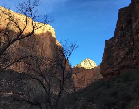 锡安国家公园,从大峡谷去拉斯维加斯路过的一个国家公园。当时出发比较早。到国家公园的时候月亮还高高挂在天上。因为是冬天去的锡安国家公园,所以景色一般。如果路过,可以去一下。专程去,感觉没必要。