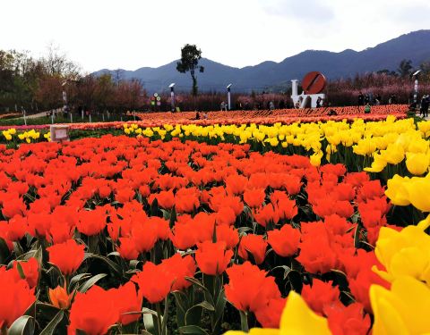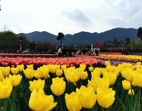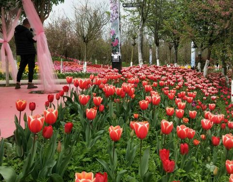 樱花己谢幕,牡丹正含苞,郁金香开得正艳,豆花正宗,其它菜一般。是照像打卡的好地方!