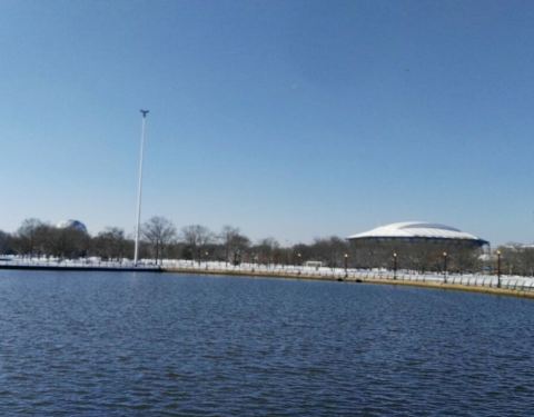 在法拉盛草地公园里因为有这个美国国家网球中心,而提升了很大名气,每年的8月底至9月初在这里举行美国网球公开赛,可惜当时2013年李娜在此参加比赛时我就在附近,那时我不了解这些,错失了那么好的机会,这两年一定要在这里看一场美网大赛。