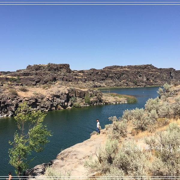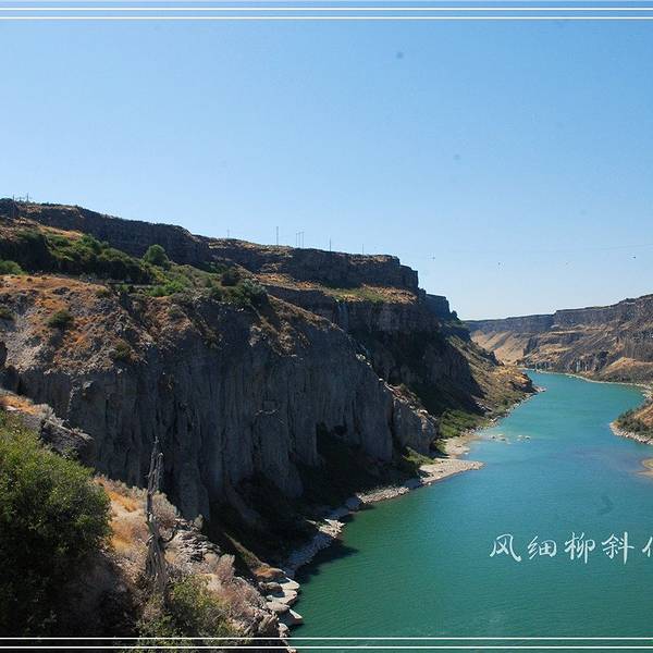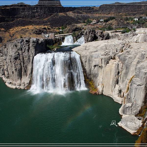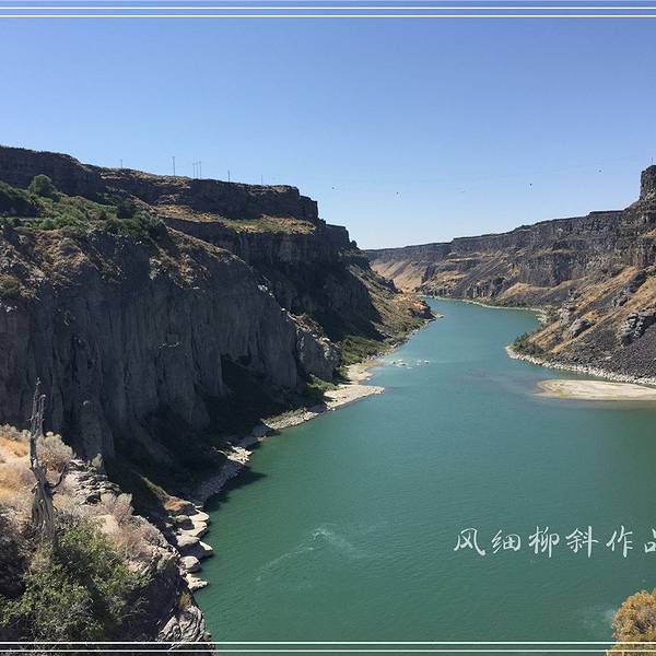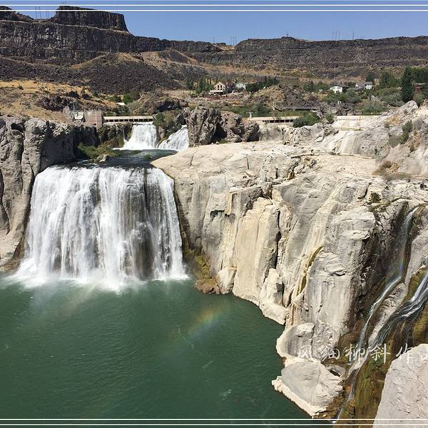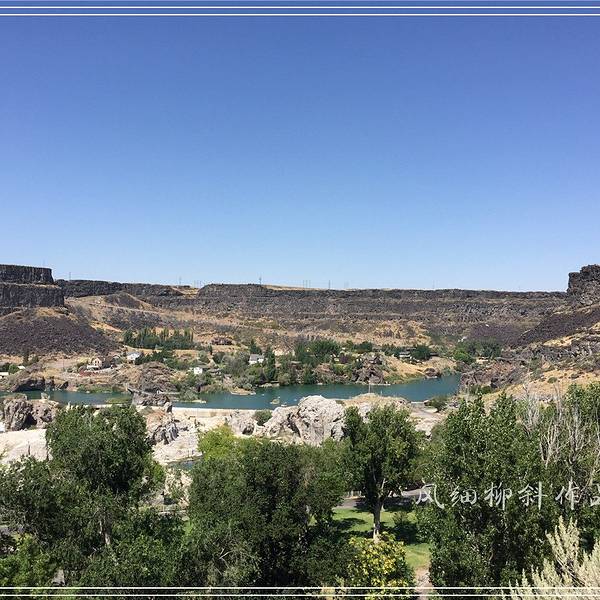 下一站在双子瀑布市,这个州的城市名有毒,全是瀑布瀑布的。。。不过,我们确实也是去看瀑布的。 肖松尼瀑布(42.593683, -114.400949)是个天然瀑布(上面建了水电站),交了3美元的通行费,我们下到这个被称为美西...