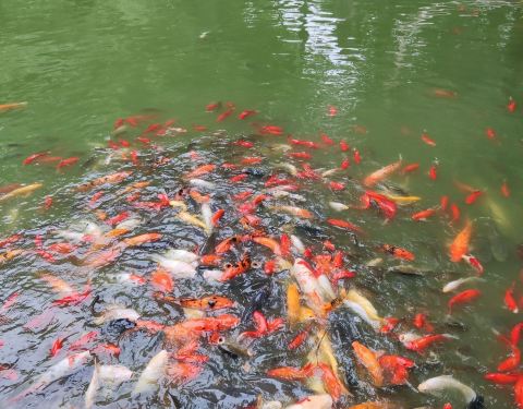 有些地方关闭了,还没有开放。还见到一个老爷子,给里面的鱼取了名字。