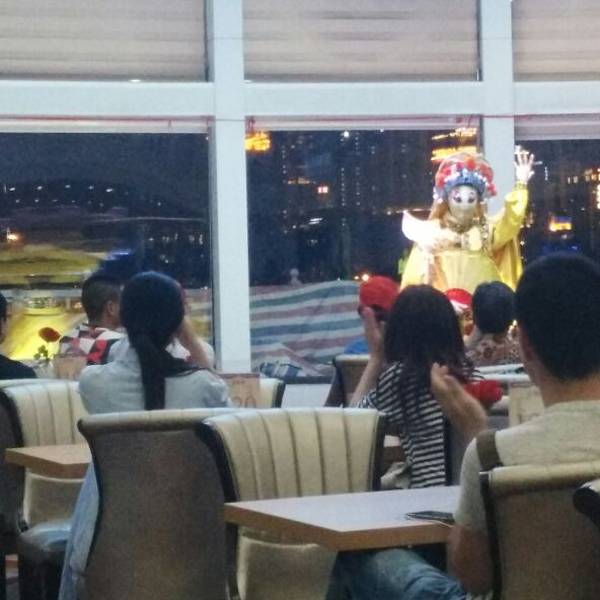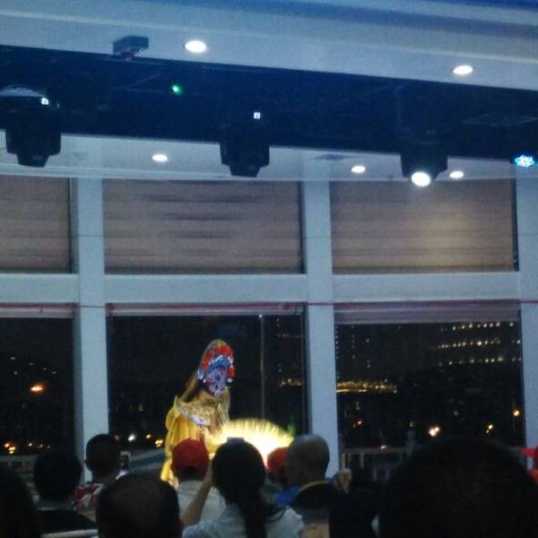 超级推荐!全程超过一个小时,非常超值去取票很快。船的座位和整体装修都很好,哪层座位的人都可以到顶层甲板看风景,有免费茶水供应,大厅还有变脸表演可以看(但我一直在顶层吹风没去看)。全程超过一个小时,非常超值!超级推荐!