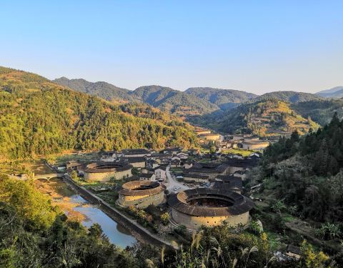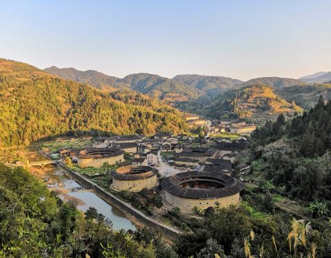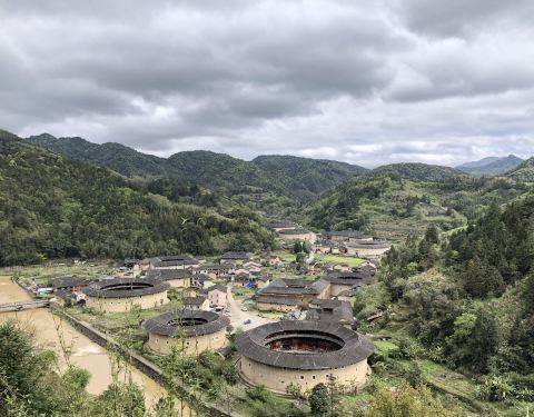河坑土楼群,由15座不同造型的土楼组成。这些土楼气势恢宏,分布在“丁”字形的小河流两岸的狭小地带。居高俯视,偌大土楼群星罗棋布于青山秀水之间,给田野平添了一道壮丽的景色...河坑土楼群(目前无门票,免费)