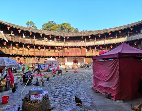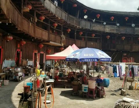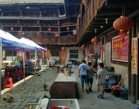 她老公长毛也非常朴实。和云水谣等土楼群不一样,这里依然住着居民。可以小坐这是个原生态土楼群,大大小小有15个土楼。和云水谣等土楼群不一样,这里依然住着居民。在这里你可看到院子里散养的鸡群,晾晒的衣物,露天做饭的村民,做米酒的烧柴的大锅,一切都是村居生活的样子。 永贵楼门廊...这是个原生态土楼群,大大小小有15个土楼。和云水谣等土楼群不一样,这里依然住着居民。在这里你可看到院子里散养的鸡群,晾晒的衣物,露天做饭的村民,做米酒的烧柴的大锅,一切都是村居生活的样子。 永贵楼门廊里有个小商铺,店主阿杜很和善。她老公长毛也非常朴实。可以小坐。 展开
