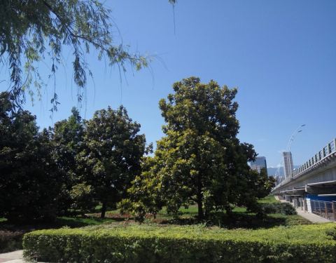 渭河公园位于宝鸡市渭滨区的渭河北岸,属于宝鸡百里河廊的组成部分,呈狭长状沿河分布,看介绍说全长有三点几公里,面积更是达到了六十万平方米,这种城中公园能达到这么大规模的还是非常少见的;渭河公园交通十分的便捷,乘坐公交42路、35路、37路、4路、3路车到【文化路南口】站下车,往河边走一百米左右即可到达公园,这里有一座非常漂亮的大桥,看牌子上写着“神龙大桥”,据说宝鸡本地人口中称呼的“渭河老桥”,便是指这个桥。桥南边的太白路,是通向宝鸡最有名的景点之一——炎帝陵;其实渭河公园是有很多种方式过来的,因为坐车到市内即可步行前往,往河边走就可以到了。