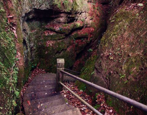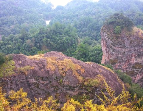 显得很柔美,山峰倒影在水中,如梦如幻,岸边的红土台地,曲折蜿蜒,色泽鲜艳,与翠绿的植被,形成强烈对比猫儿山距泰宁28公里,在去往大金湖的同一条路上,过大金湖后再一直向前走,约计有15公里的路段在修路,泥泞不堪,啥时候能修好尚不得而知,估计这也是往猫儿山游人稀少的一个重大的理由。