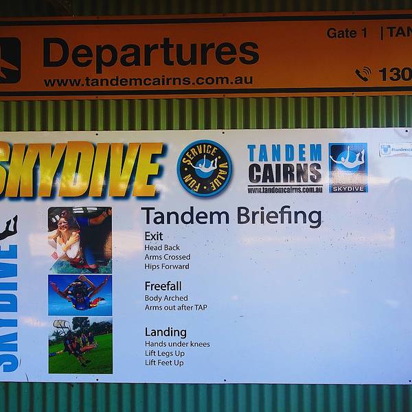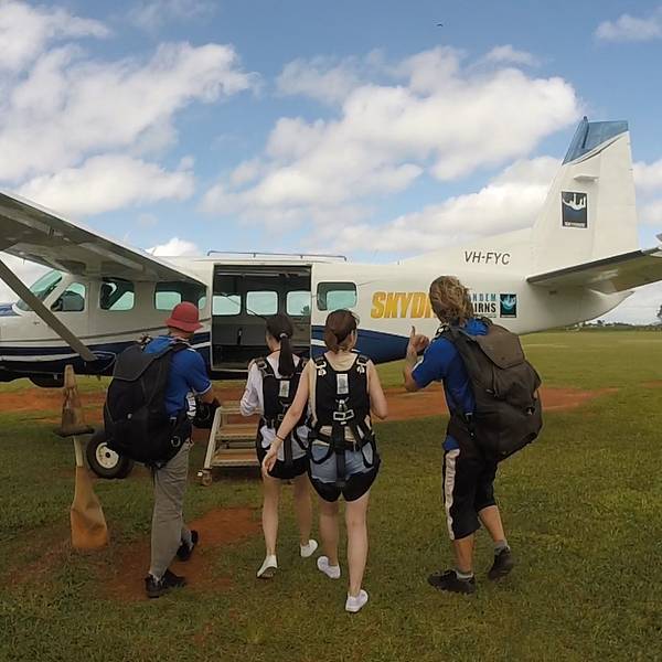 机票订的是星期六早上六点多钟的航班。刚结束星期五紧张的学习,隔天就要凌晨赶往黄金海岸机场,竟是一觉无眠。经过长达两个半小时的飞行后,顺利抵达凯恩斯机场。由于跳伞的行程直接被安排在了星期六上午11点钟,到达背包客栈放好行李之后,不过一两小时就要前往跳伞基地了。