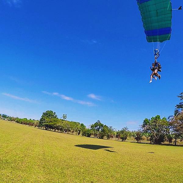 教练身上的降落伞慢慢的打开了,我们停留在天空几百米的位置,看着脚下的土地越来越近。不过短短一分钟,我们就返回了地面。前面五六个小时都是为了这一分钟而存在的铺垫,可这也值得了。或许这样的经历一生就只有一次吧。