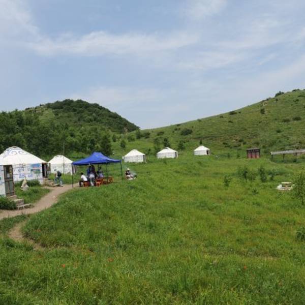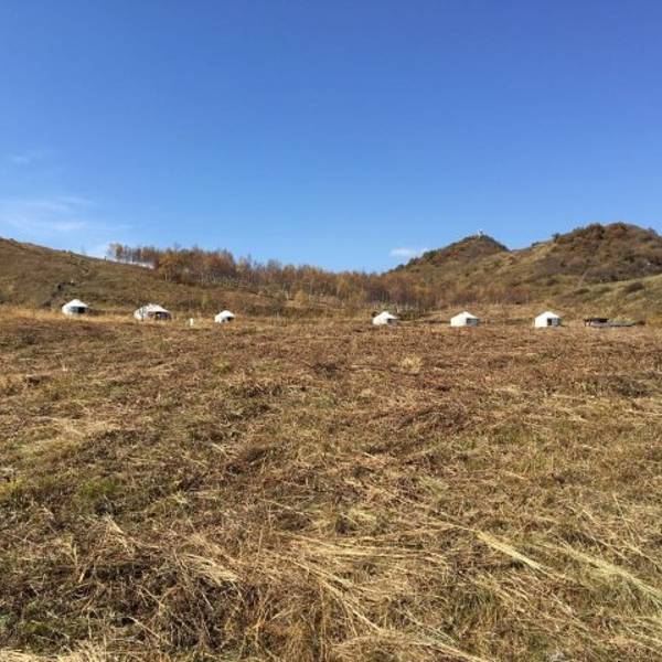 因云雾缭绕而得名,如此美丽的草原竟然在这山巅之上(海拔1800米),一望无际的草原碧草如毯,白云之中草原上碧草茫茫,山花点点放眼观望郁郁葱葱,云雾蒙蒙,天气晴朗的时候可看到波光粼粼的官厅湖,在草原上还可以看到一片片墨绿色的榛子林和一片片银白色的白桦林,白云缭绕在周围,群峰尽收眼底,站在草原,可观连绵峰顶,云海滚滚,仿佛置身于超凡仙境。环绕四周,群山如黛,云雾缭绕,竟在周身与脚下,真有一番飘飘欲仙的感觉。这里四五月份为花季,鲜花怒放,竞相争艳,各种桃花、杏花、野菊花遍布整个草原及黄龙山庄的每一个角落。