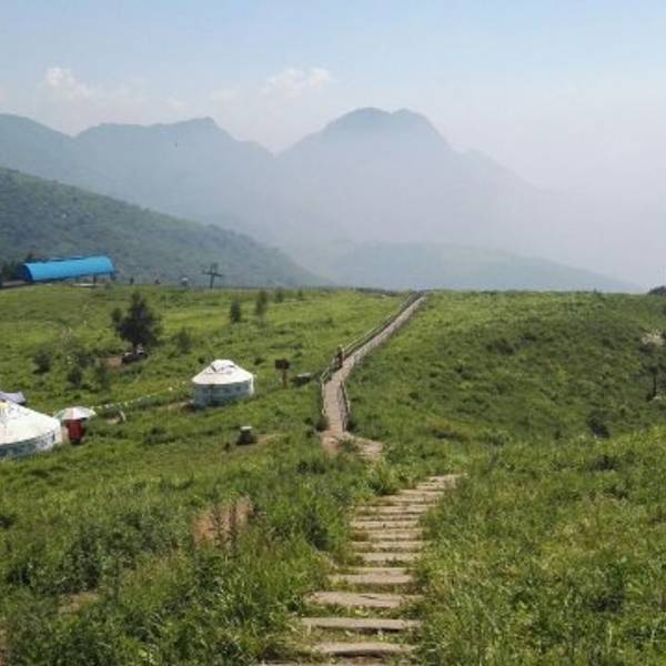 云中草原位于黄龙山顶,海拔1800米,面积约100公顷。一望无际的草原碧草如毯,白云缭绕在周围,群峰尽收眼底,站在草原,可观连绵峰顶,云海滚滚,仿佛置身于超凡仙境。