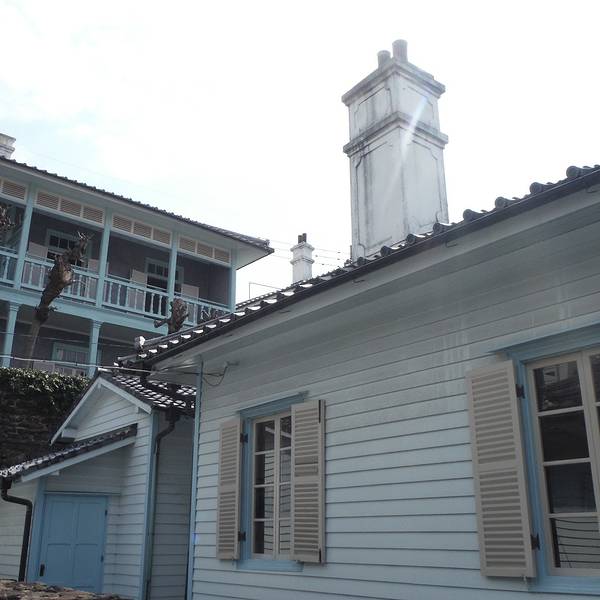 走出來是東山手洋風住宅群。 聽其名就知道,這裡是早期西式的建築。長崎、橫濱、函館在1859年被迫對外開放,留下了這一些歐式的建築。 如果你也去过函馆、横滨就知道,因为这是被迫开放的。西方人选择了極佳的位...