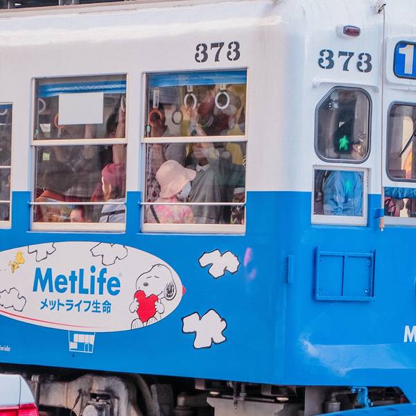 路上一辆好可爱的电车,史努比看了几个表演后,就离开浜町了,之前错过出岛的日落,这次一定赶得上!