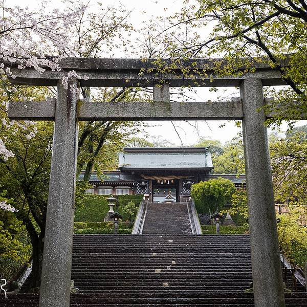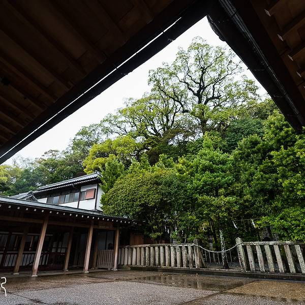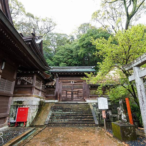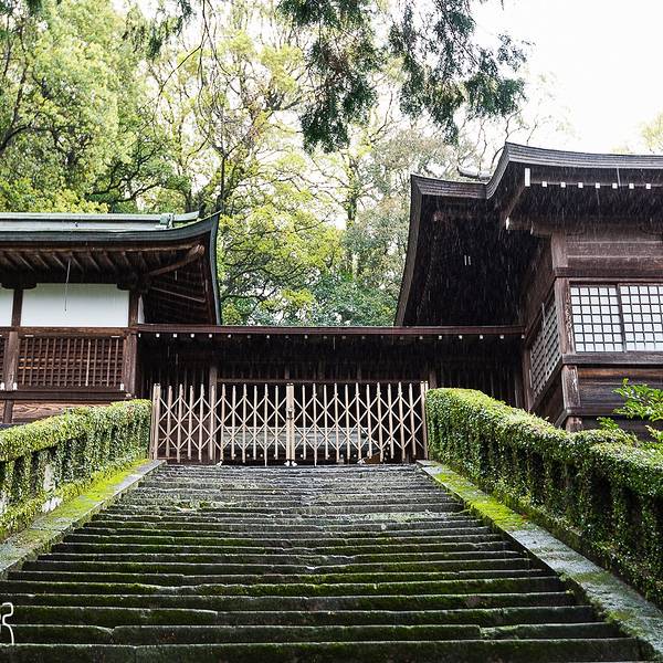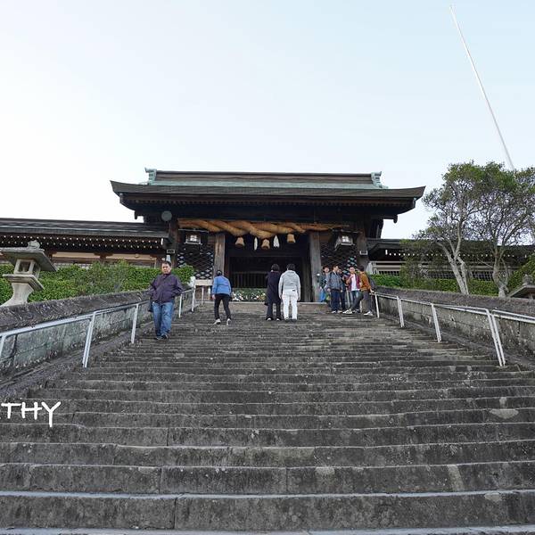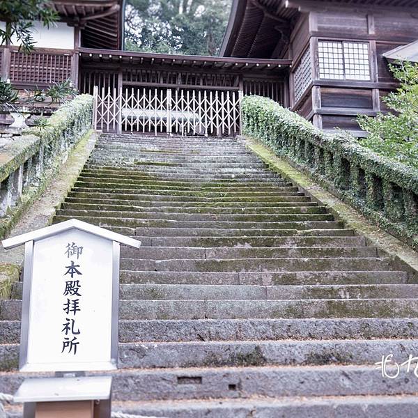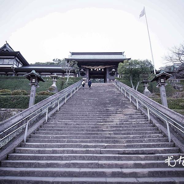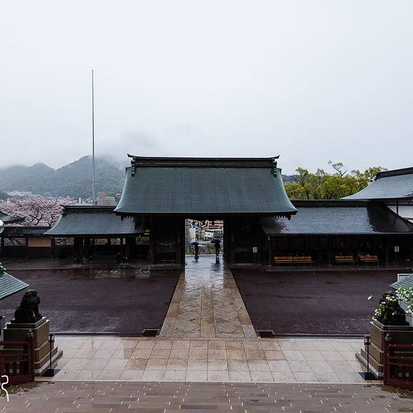 于是,撑着雨伞,在雨中漫步,来到这座长崎规模最大的神社前。一步一步,爬上高高的台阶,走进神社。