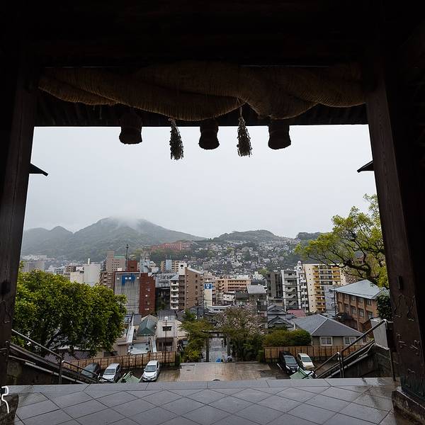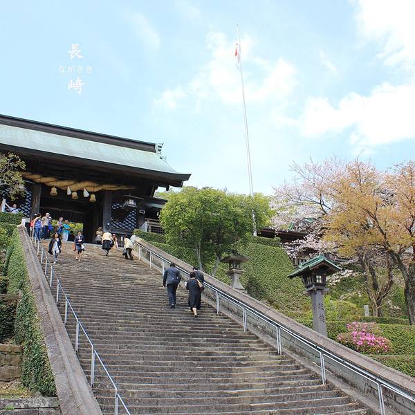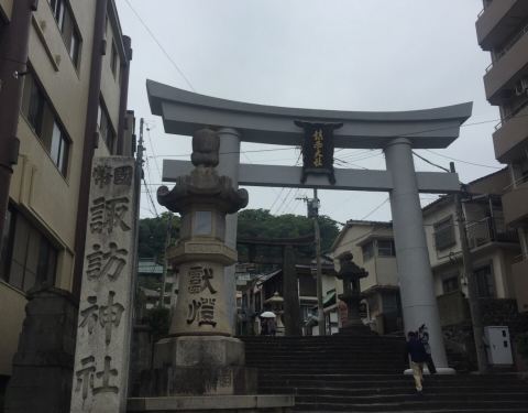諏訪神社是长崎最大的神社,位于一座小山坡上。从电车站需要步行经过民居然后再攀爬一段阶梯才能到达諏訪神社