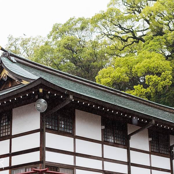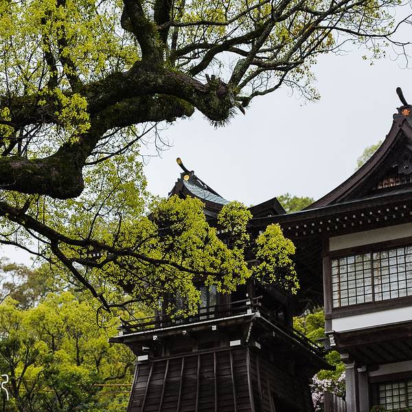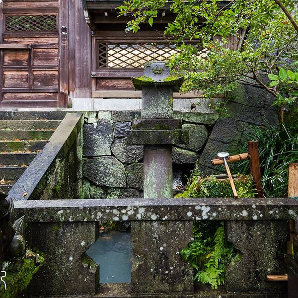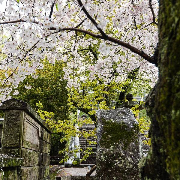 也是在访遍了神社的樱花之后,才回到大门,重新认识神社。主建筑依山而建,自有其气魄,两旁的狛犬守护着神社。虽然台阶下便是人家,可大门以内,似乎按照自己的时空流转。雨中的神社,干净清明,似乎回到了古老的曾经。