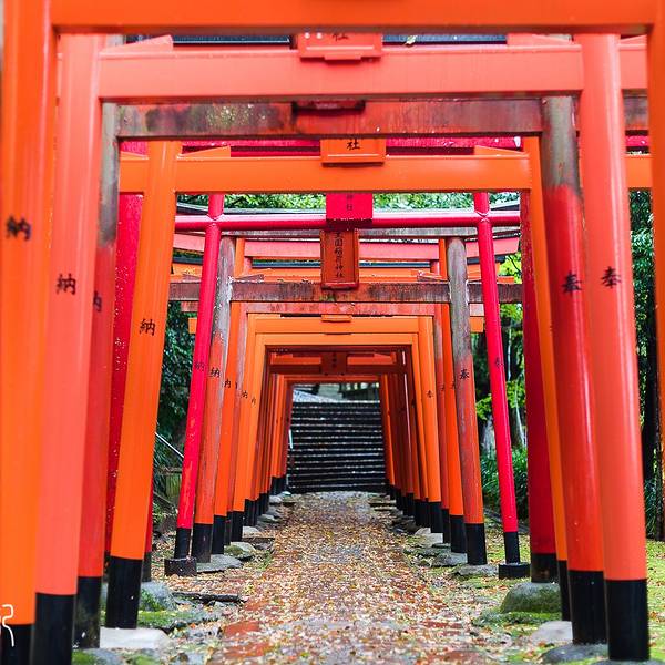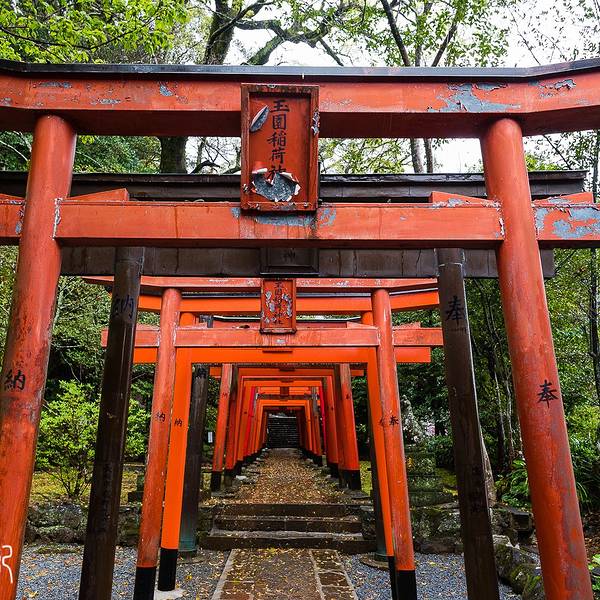 沿着台阶,循着鸟居,慢慢的向前,雨中的凄清,正适合此时的拜访。