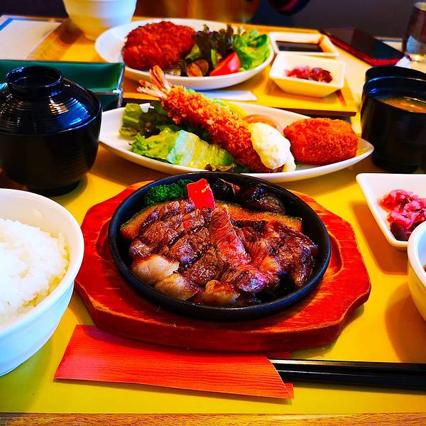 鸟居也是一个人都没有呢。晚饭在酒店对面的Royal Host解决的!猪扒饭有点点肥肉,不过牛排是极好吃的!!!这里也是酒店吃早饭的地方~~~ 展开