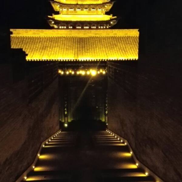 夜间的灯光下,富有古韵,很安静,温泉池太少。