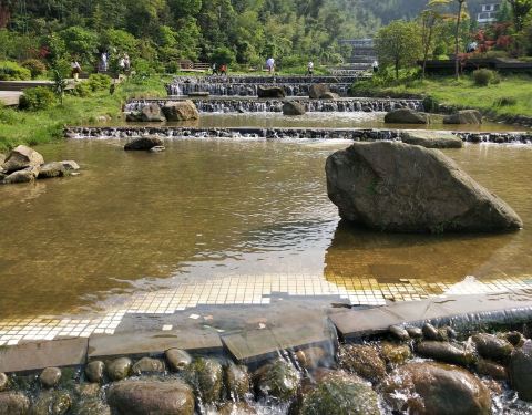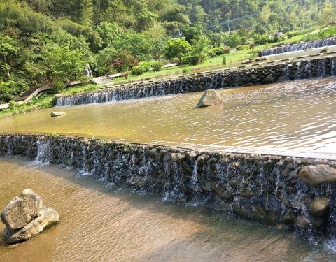 ...假的,别相信宣传图,竹子很多都被折断了啊,不知道是不是砍的……水还是不错,挺干净的,推荐夏天来还行吧,一般般,七彩池是假的,别相信宣传图,竹子很多都被折断了啊,不知道是不是砍的……水还是不错,挺干净的,推荐夏天来