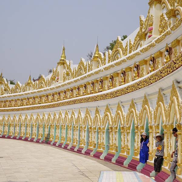离松乌蓬亚信佛塔没多远的乌敏东色寺,地方其实是挺大的!它最令人留下深刻印象的,非其载有45尊坐佛的新月形廊柱莫属,大家游实皆山时,勿错过了!