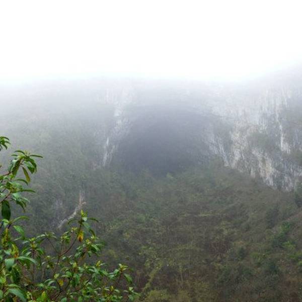 穿洞天坑地处乐业县大石围天坑群景区,距县城约18公里。约200多万年前形成于峰峦之中穿洞天坑地处乐业县大石围天坑群景区,距县城约18公里。约200多万年前形成于峰峦之中。穿洞天坑呈多边形,长短轴分为370米和270米, 2017-05-27 07:11