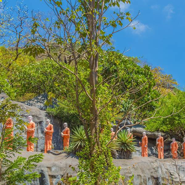 注意:山上有很多猴子,喜欢抢吃的抢花儿,要格外小心,尤其是老猴!第二站丹布勒石窟寺,也叫丹布勒金寺第二站丹布勒石窟寺,也叫丹布勒金寺。拥有2000年的历史,共有五座石窟,150尊佛像,石窟内的壁画至今色彩艳丽。
