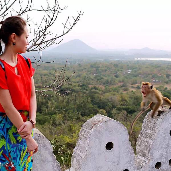 今天的天气也很好,登高望远看,风景真的不错。这猴子像是长了一脸老年斑,让我都不敢盯着它一直看刚出发没多久我们就来到丹布勒石窟寺,本来不想去看了,想早点去康提,但是Dinesh说这里值得一看,很建议我们下车看看,花不了多久时间,好吧,冉先森一贯的原则“来都来了,那就看看吧。”真是一尊金光闪闪的大...刚出发没多久我们就来到丹布勒石窟寺,本来不想去看了,想早点去康提,但是Dinesh说这里值得一看,很建议我们下车看看,花不了多久时间,好吧,冉先森一贯的原则“来都来了,那就看看吧。”真是一尊金光闪闪的大佛,实际看到的感觉比照片给人的感觉还要大很多。本来没计划来这里穿的裙子是无袖加不过膝的,结果被禁止入内,还好我提前准备了好几条围巾,上身下身都裹起来,才勉强让我进入,就忽略我这一身混搭风吧。又是上坡路,昨天爬山的酸痛感还没缓过来,现在是走一步疼一步啊。今天的天气也很好,登高望远看,风景真的不错。这猴子像是长了一脸老年斑,让我都不敢盯着它一直看。从丹布勒的小山坡下来偶遇卖黄金椰子的,早就听闻到斯里兰卡来必吃黄金椰子,不仅价格低廉,还汁多甘甜,美味极了,椰子中的性价比之王。这里70卢比一个也就是人民币3块多,真心便宜,这里教大家一个快速算汇率的小技巧,就是先去掉一个0,再除以2基本就是大概的人民币价格哦。 展开