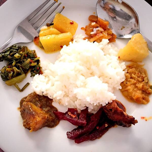 午饭在当地网红店解决,正宗的 斯里兰卡 食物,环境清新价格公道,主打咖喱饭。十多种素食咖喱配上米饭一起,有咖喱菠萝,咖喱南瓜,咖喱土豆,咖喱萝卜,咖喱茄子,咖喱辣椒等等,味道出乎意料,是我吃过的兰卡...