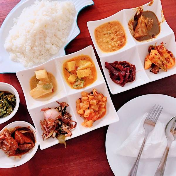 幸运堡垒餐厅(Lucky Fort Restaurant)主推每日一个的“十种咖喱拼配”套餐,甜菜、茄子、大蒜、菠萝蜜、凤梨、鹰嘴豆皆在此列,最特别的要数芒果咖喱, 酸甜的果肉和多种风味的咖喱完美碰撞,最惊喜则是采用嫩菠萝蜜做的咖喱,散发出一种甘甜,中和掉了酸辣的口味,尤其清鲜爽脆。