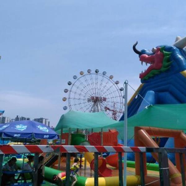 同城1元去的这里,全是充气的,适合小孩子和胆子不太大的人,很划算,现在华生园也在做这个活动,买东西可以10元去玩,感觉还不错。