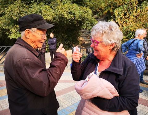 老年无国界 东单公园 一群来京旅游的外国老人,加入到了北京老人的舞蹈之中老年无国界 东单公园 一群来京旅游的外国老人,加入到了北京老人的舞蹈之中。 很惊讶这些北京老人的英语水平,口语交流无障碍!开放的北京欢迎您 国之交 还在于民相亲 。