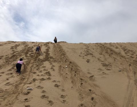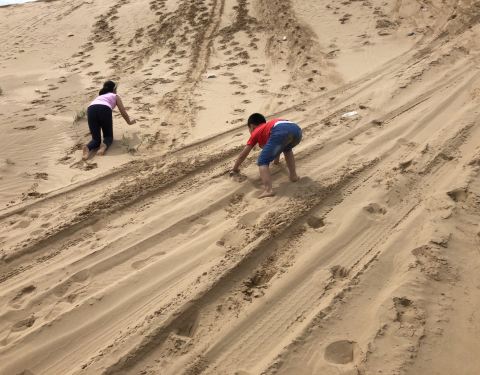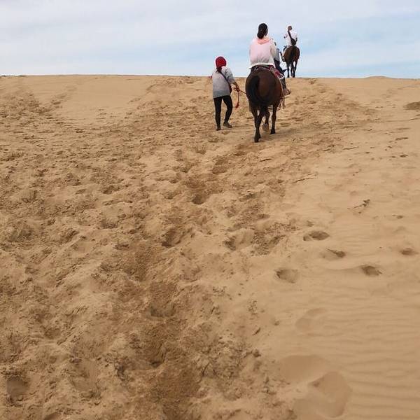 没去过沙漠的人可以去,门票50元,骑马50元,骑骆驼60元,沙细细绵绵的,光着脚丫挺舒服的